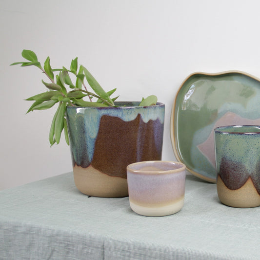Découvrez l'essence de l'artisanat avec tous les cache-pots en céramique fabriqués à la main au tour de potier. Idéal pour ajouter une touche colorée à votre intérieur et arroser vos plantes en direct. S'adapte aux petits pots et aux pots de fleurs plus gros.